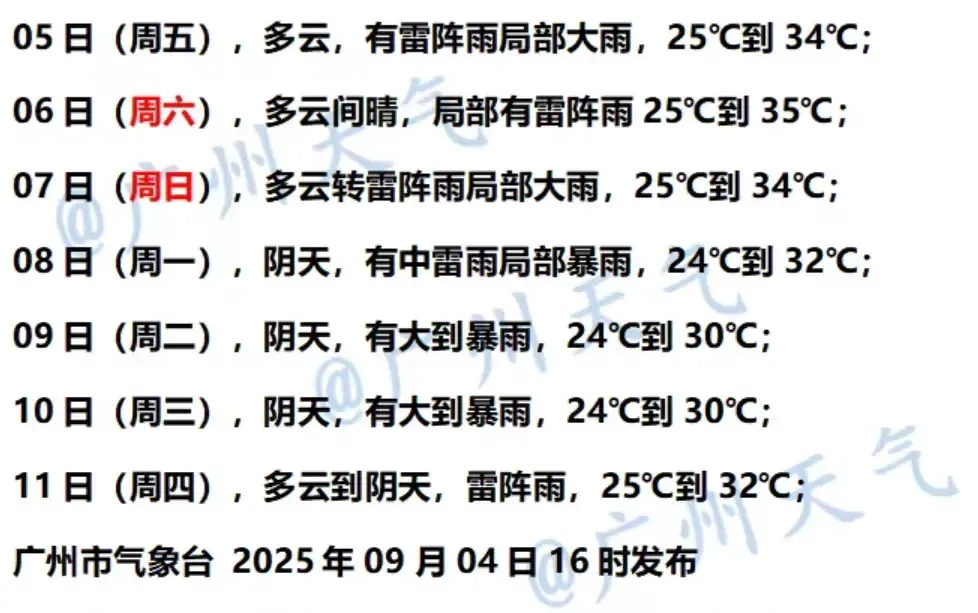 @广州天气 预计5-6日,广州高温晴热天气为主,午后有雷雨随机出没;其中5日受东风波动影响,云系和雷雨略增(雷阵雨,局部大雨);展望7日起可能受热带系统外围环流影响,雷雨转频繁,8-10日降水更趋明显。